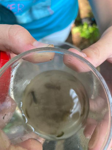 Eine Gruppe bestimmte mit Frau Peschl und Frau Allgayer verschiedene Wasserbewohner. Wir entdeckten verschiedene Larven, Wasserläufer aber auch Spinnen. Natürlich haben wir alle Tiere, nachdem wir sie in den Becherlupen beobachtet haben, wieder vorsichtig in ihr Zuhause zurückgesetzt.