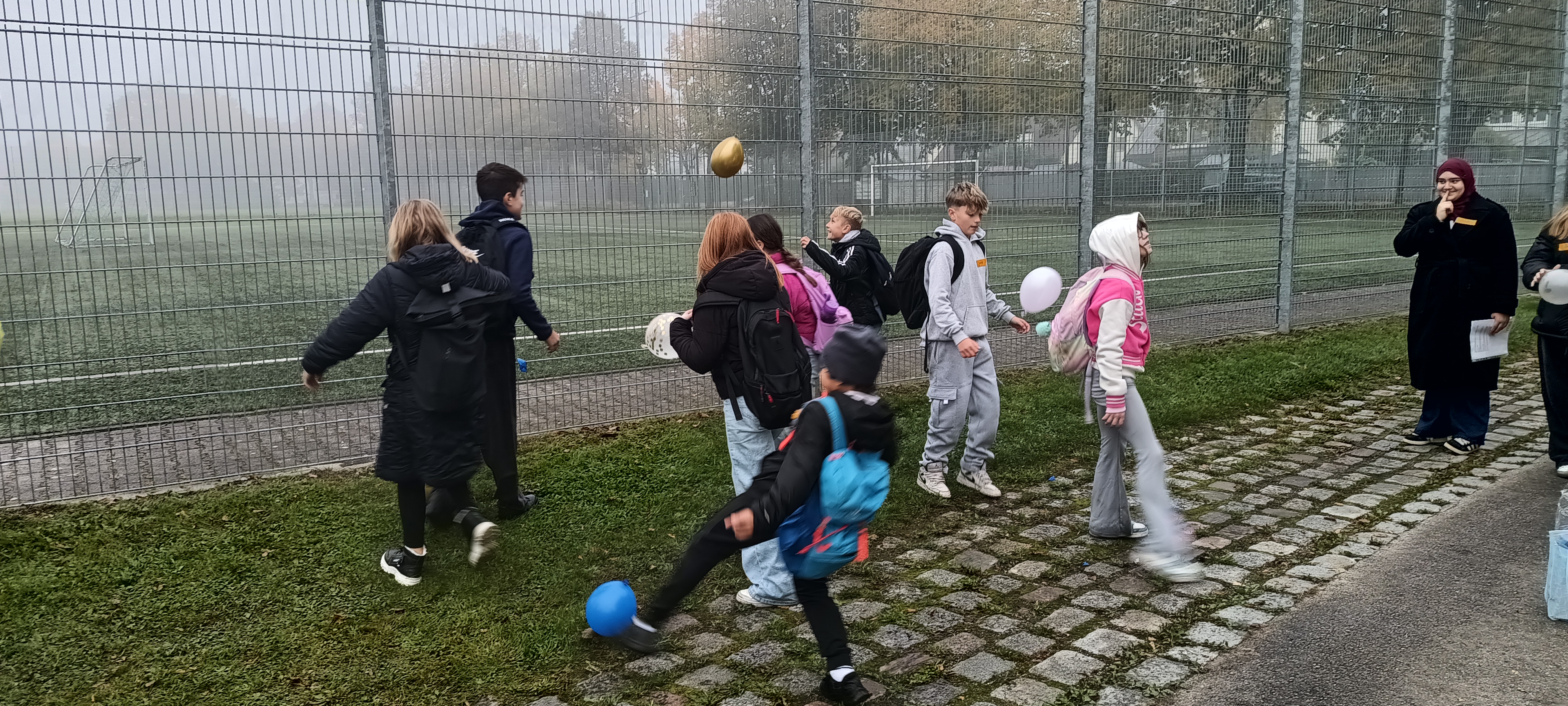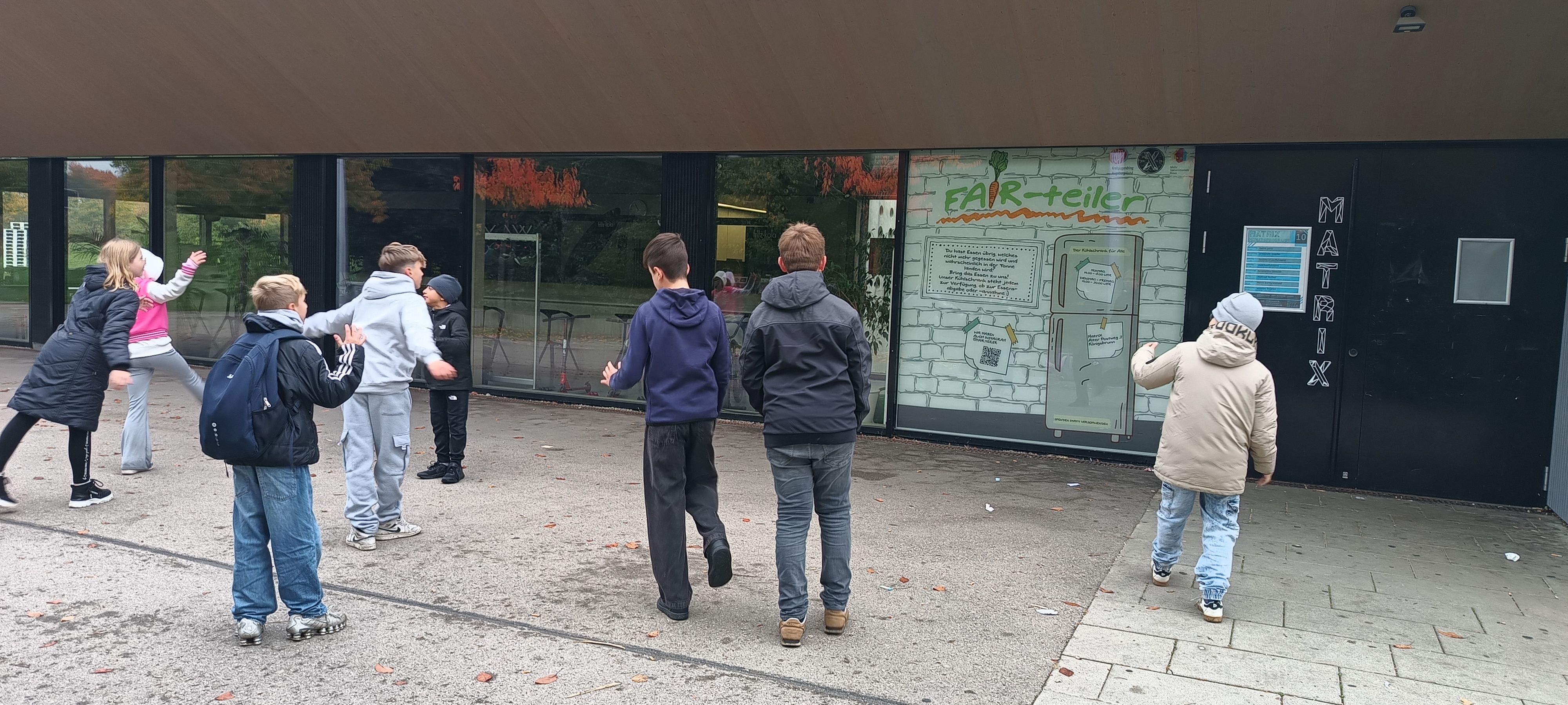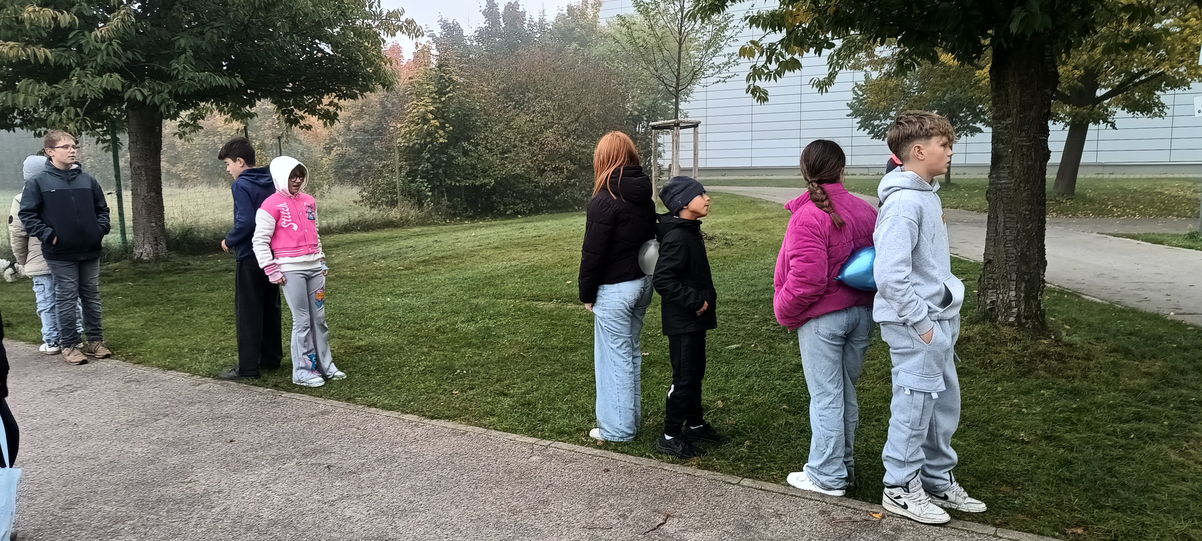 In kleinen Gruppen hatten die Großen verschiedene Themen vorbereitet – zum Beispiel Detektive, Schatzsucher oder Abenteurer. Passend dazu gab es Rätsel, Spiele und Aufgaben, die die Kleinen mit viel Eifer lösen mussten. Die Zehntklässler und Zehntklässlerinnen hatten sich im Vorfeld richtig gut vorbereitet und übernahmen Verantwortung: Sie erklärten geduldig, führten durch Königsbrunn und achteten dabei auch darauf, dass alle sicher unterwegs waren – besonders im Straßenverkehr.