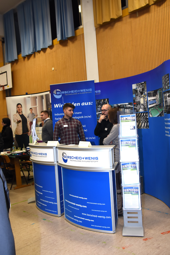 55 Betriebe und Institutionen waren 2025 Jahr bei uns vertreten. Dieses vielfältige Angebot ist im gesamten schwäbischen Raum beispiellos. Es ist uns wichtig, dass neben großen Unternehmen auch mittelständische Firmen aus Königsbrunn, Bobingen, Augsburg und Umgebung, sowie Berufsschulen, Berufsfachschulen und Institutionen wie HWK etc. vertreten sind und eine breite Palette von Berufsfeldern präsentieren.